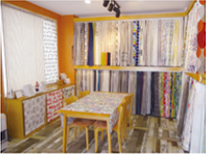 プレーンシェード、ロールスクリーン、縦型ブラインド、ビジックなど、実物の商品を多数展示しています。 |
